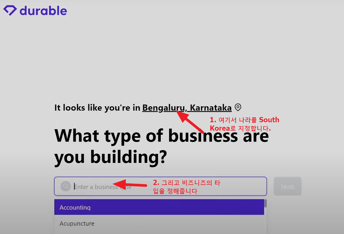 이처럼 어떤 지역에서 어떤 비즈니스를 할 것인지 물어봅니다. 그럼 한국와 자신의 비즈니스에 대해 카테고리를 정해주시면 됩니다. 예를 들어서 이번엔 오디오 상품점으로 만들어보겠습니다.