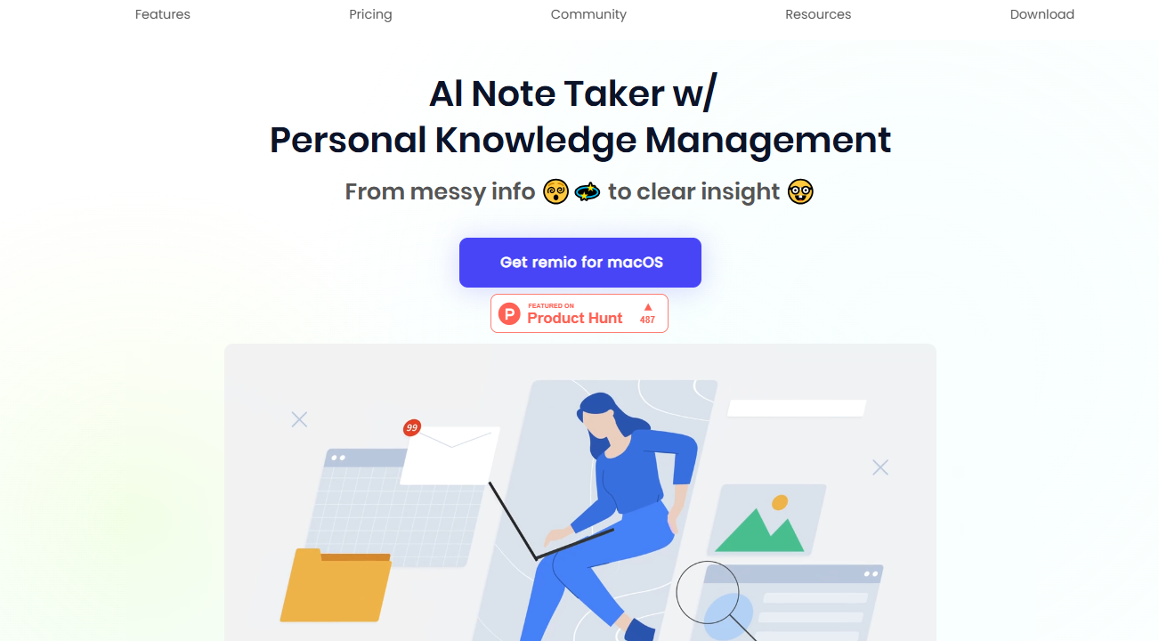 - AI 기반 노트 정리 및 "Ask Remio" 질문 기능