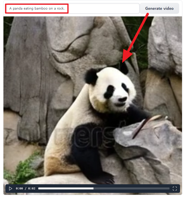 저희 예시로 "A panda eating bamboo on a rock." 번역하면, 돌 위에서 대나무를 먹는 팬다를 입력했을 때 아래와 같이 영상이 나오는 것을 확인 할 수 있습니다.