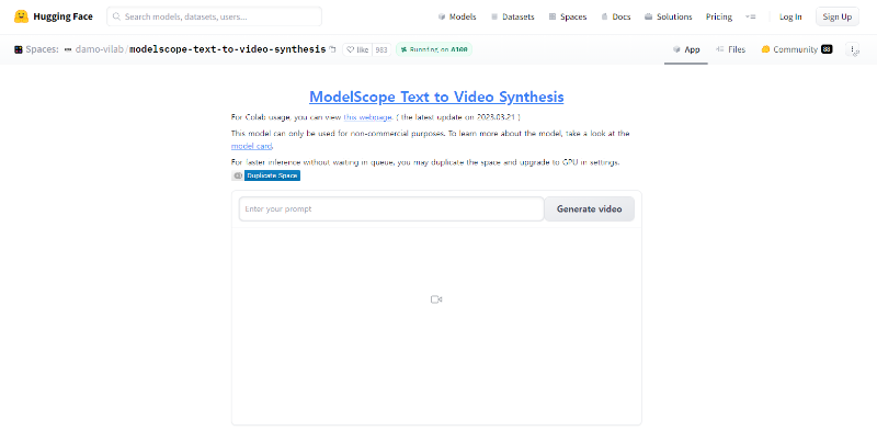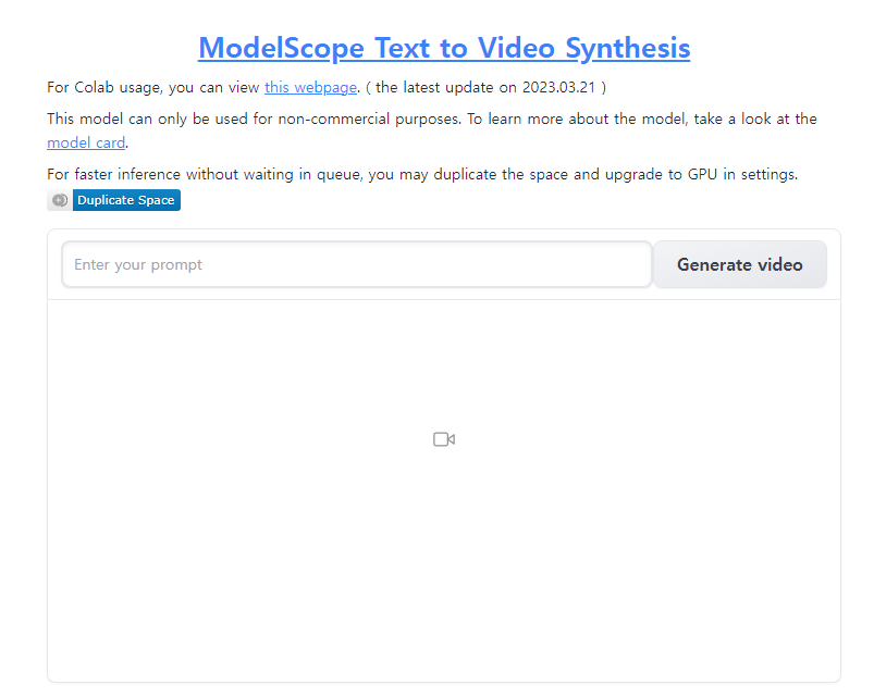 현재 ModelScope 서비스는 현재 데모버젼으로 AI 기술의 집합소인 Hugging Face 플랫폼에서 무료로 시연이 가능합니다. 상단에 사이트 바로가기에서 원하는 텍스트를 넣고 동영상을 마음껏 만들어 보세요.