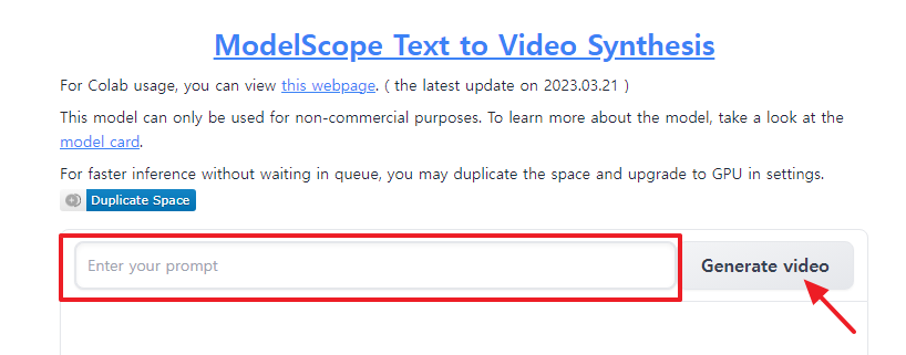 현재 ModelScope 서비스는 현재 데모버젼으로 AI 기술의 집합소인 Hugging Face 플랫폼에서 무료로 시연이 가능합니다. 상단에 사이트 바로가기에서 원하는 텍스트를 넣고 동영상을 마음껏 만들어 보세요.