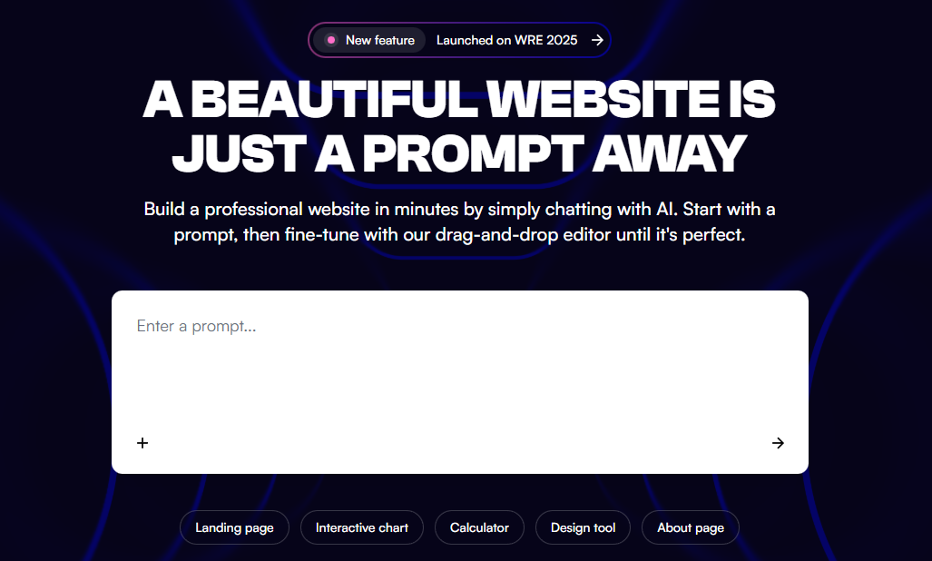 | 한 줄 요약 | 챗봇과 대화하듯 웹사이트를 순식간에 구축하고 드래그 앤 드롭 편집기로 세부 조정이 가능한 AI 서비스. |
