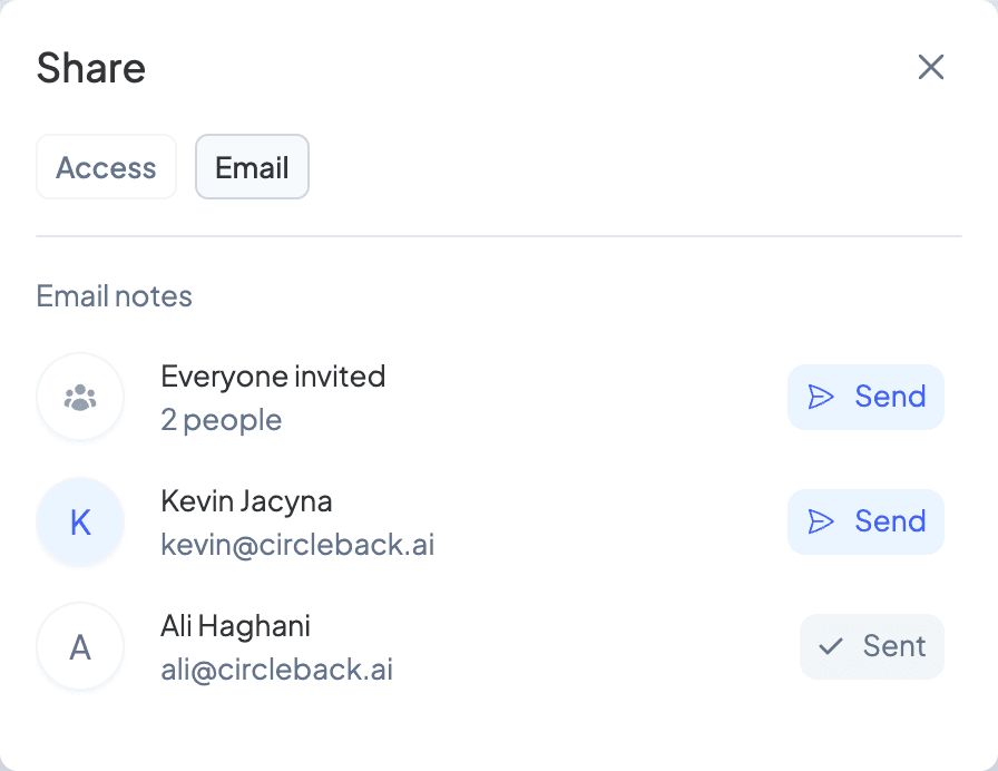 회의가 종료되면 Circleback AI는 자동으로 회의 내용을 전사하고 요약하여 노트와 실행 항목을 생성합니다. 생성된 노트는 대시보드에서 확인할 수 있으며, 팀원들과 공유할 수 있습니다.