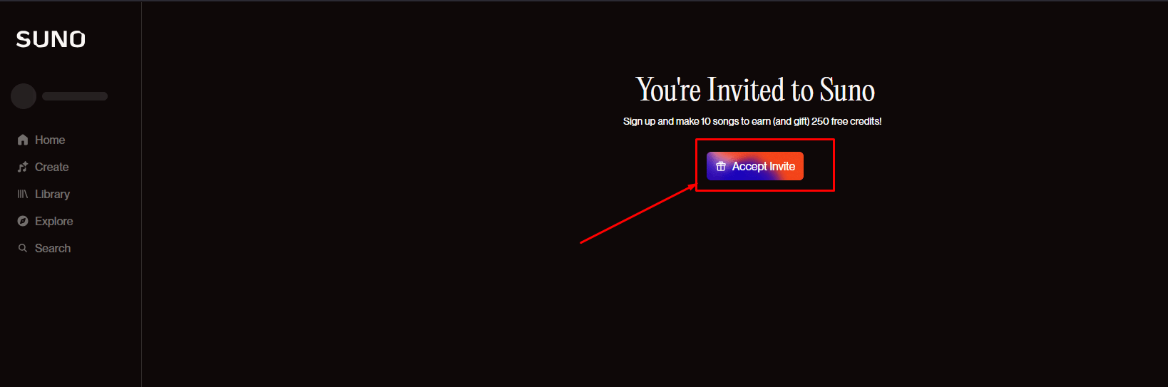 Suno AI에 접속한 후, 우측 상단의 "Accept Invide" 버튼을 클릭하여 구글 이메일로 들어가 아이디와 비밀번호를 입력하면 계정이 생성됩니다. 인증 이메일을 확인하고 인증을 완료하면 가입이 완료됩니다. 가입 후에는 무료 크레딧이 제공되어 즉시 음악 제작을 시작할 수 있습니다.