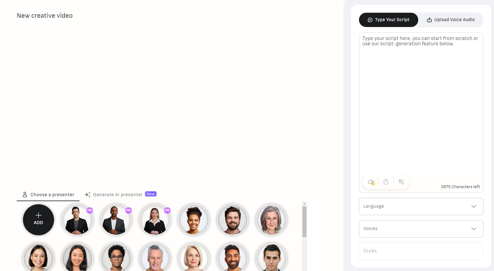 우측은 아바타를 아래에서 선정하여 불러오거나 ADD를 눌러 본인이 원하는 캐릭터 이미지를 불러올 수 있습니다. 그 아바타를 바탕으로 좌측에 TTS 형식으로 글을 작성하거나 오디오 파일을 넣고 음성에 맞도록 생성할 수 있습니다.