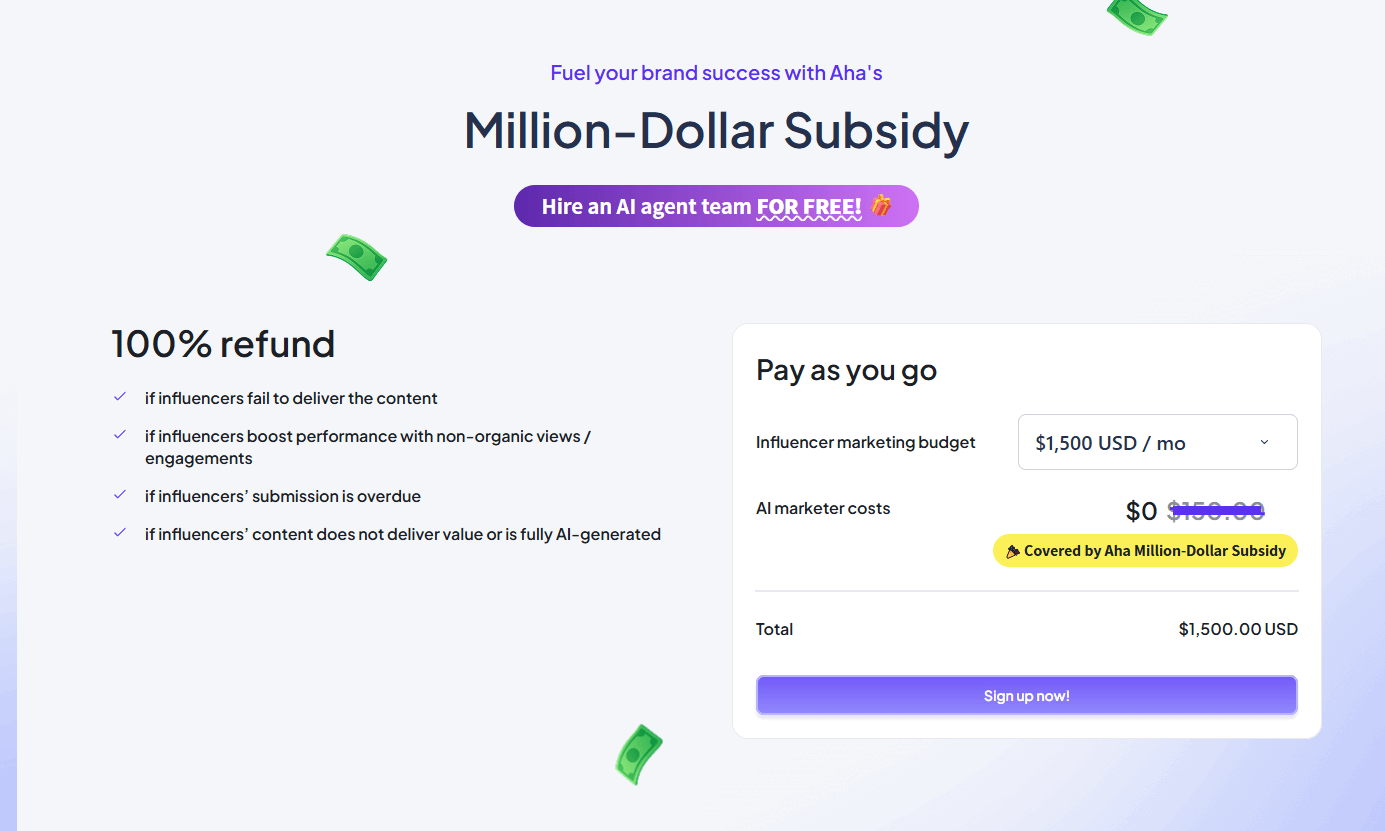 아하 AI(Aha AI)는 세계 최초의 24/7 인플루언서 마케팅을 위한 AI 에이전트 팀입니다. 이 플랫폼은 브랜드가 인플루언서 캠페인을 자동으로 실행, 관리 및 확장할 수 있도록 지원합니다.