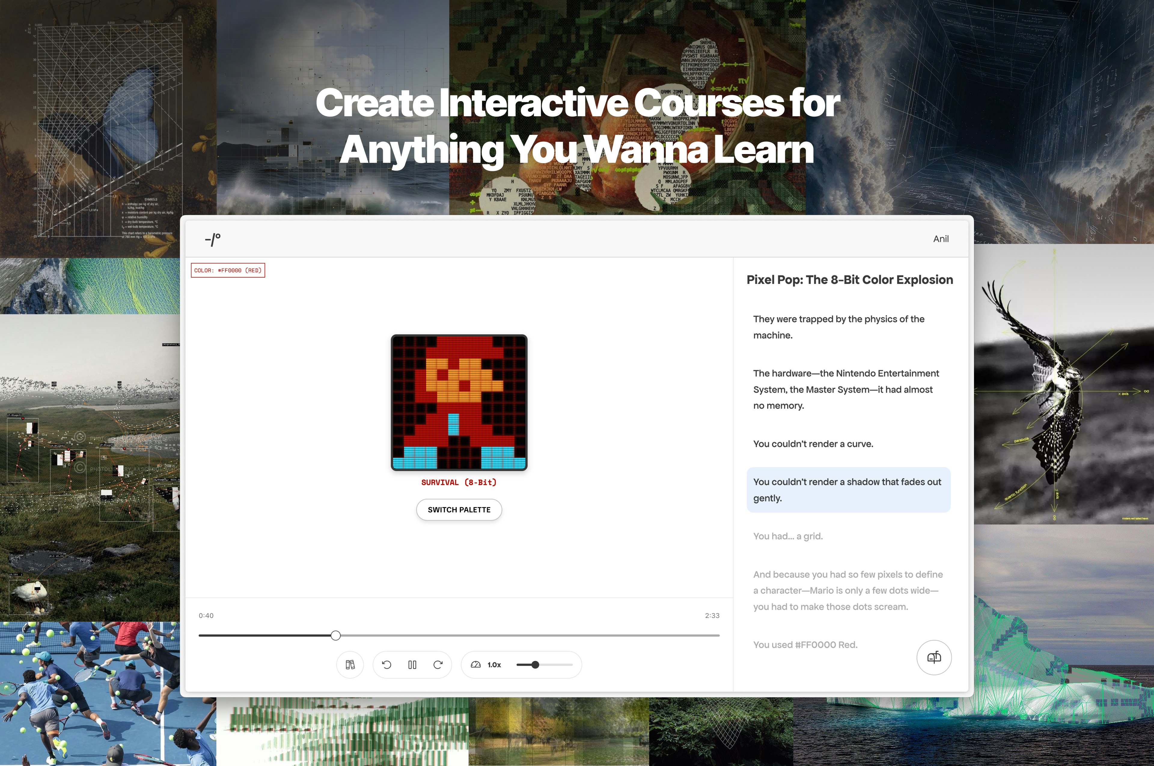 이런 질문을 통해 당신의 현재 지식 수준, 선호하는 학습 방식, 목표까지 파악합니다. 그리고는 이 데이터를 실시간으로 반영하여 애니메이션 코스를 즉시 생성해주는 거죠. 제가 실제로 "양자 컴퓨팅의 기본 원리"에 대해 입력해봤는데, 딱딱한 공식 대신 흥미로운 애니메이션과 비유를 섞어 설명해주더군요. 진짜 대박이지 않나요?
