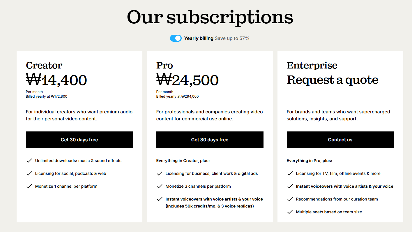 아래 버튼을 눌러 Epidemic Sound 가입하시면 30일 무료 체험을 하실 수 있습니다.