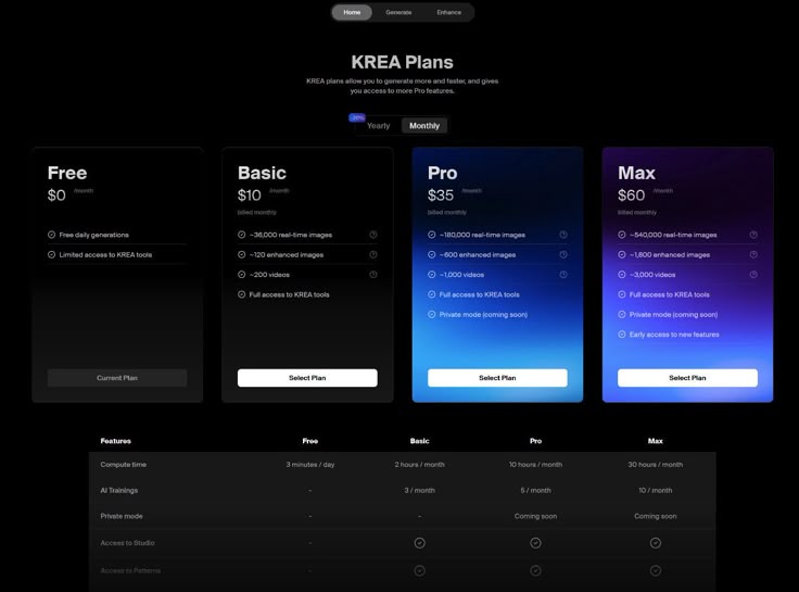 크레아 Ai는 다양한 요금제를 제공합니다.