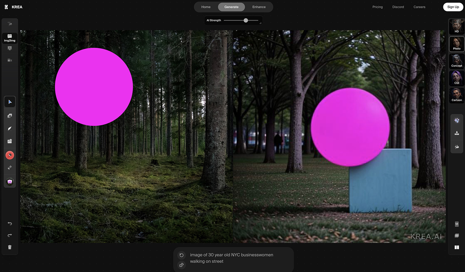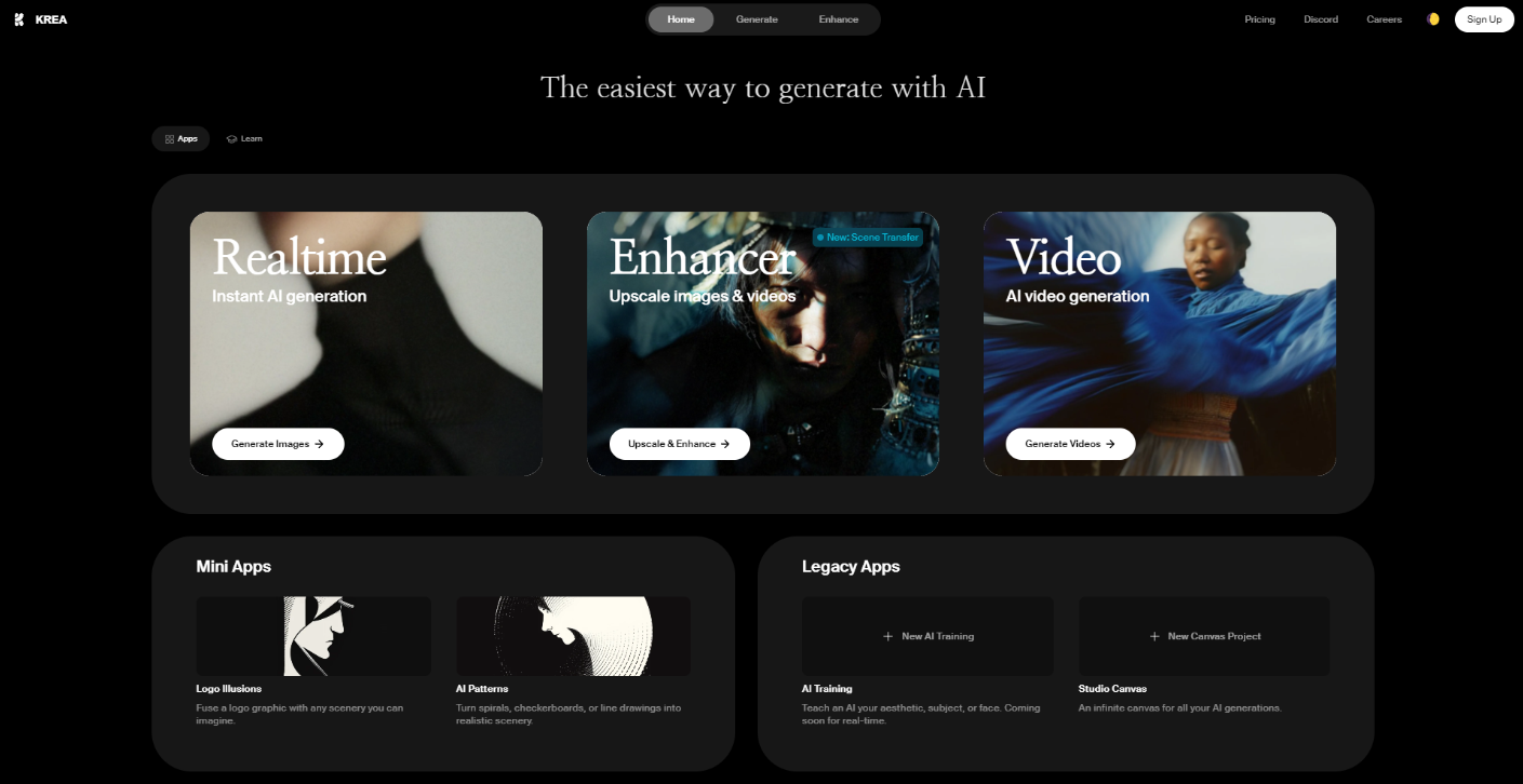 Krea AI는 실시간 이미지 생성, AI 영상 제작, 텍스트 기반 3D 모델링까지 가능한 종합 크리에이티브 플랫폼입니다.krea ai 사이트 접속은 위에서 하실 수 있고 크레아 krea ai가 부분 무료 및 유료로 서비스 중이니 정확한 크레아 ai 가격은 공식 홈페이지를 통해 확인해보세요. 크레아 AI는 간편한 인터페이스와 강력한 생성 능력으로 많은 크리에이터들의 사랑을 받고 있습니다.