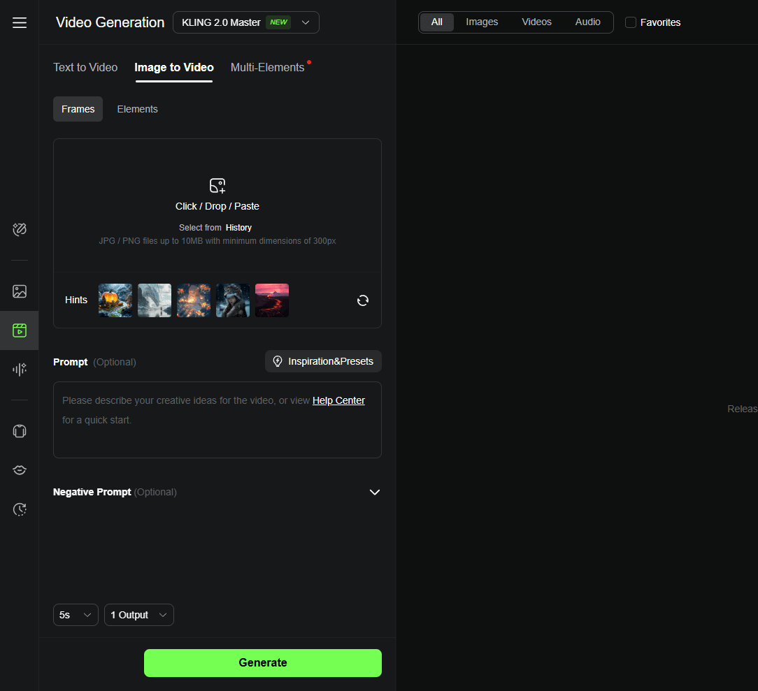 "AI Videos" 메뉴에서 "Image to Video" 옵션을 선택한 후, 업로드한 이미지를 기반으로 움직임이 있는 영상을 생성할 수 있습니다. 이미지를 업로드하고, 원하는 움직임이나 효과를 프롬프트로 입력하면, 정적인 이미지에 생동감을 불어넣은 영상이 만들어집니다.