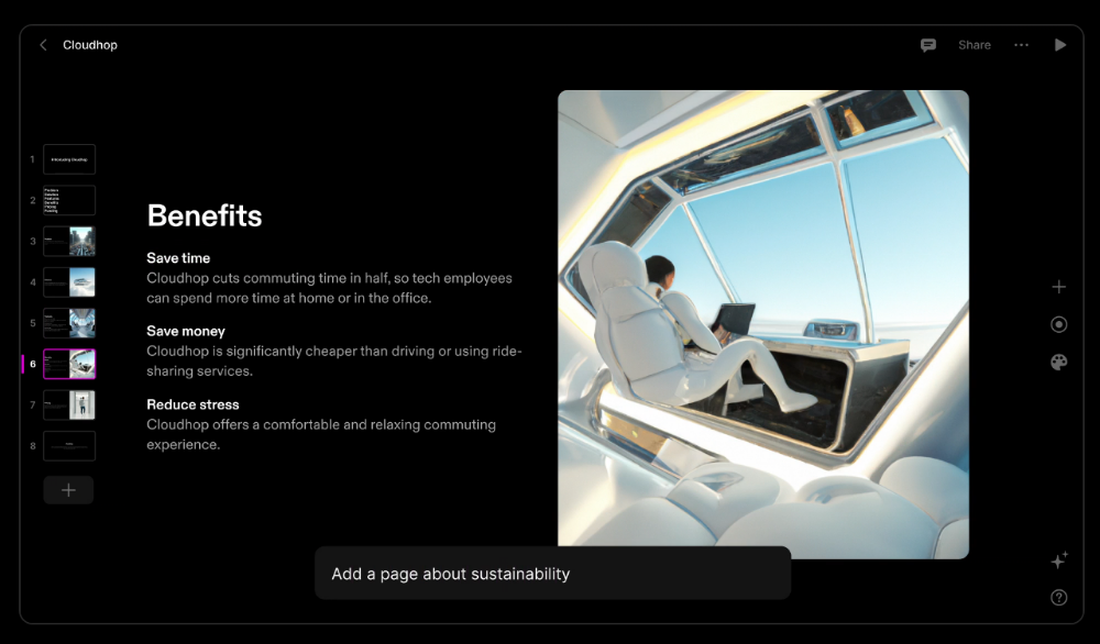 AI 인공지능 PPT 생성 서비스인 톰(Tome)은 현재 베타버전으로 기본적인 기능은 무료로 사용가능 하십니다. 단, 길이 & 영상 페이지별 별도 크레딧이 필요할 수 있습니다.