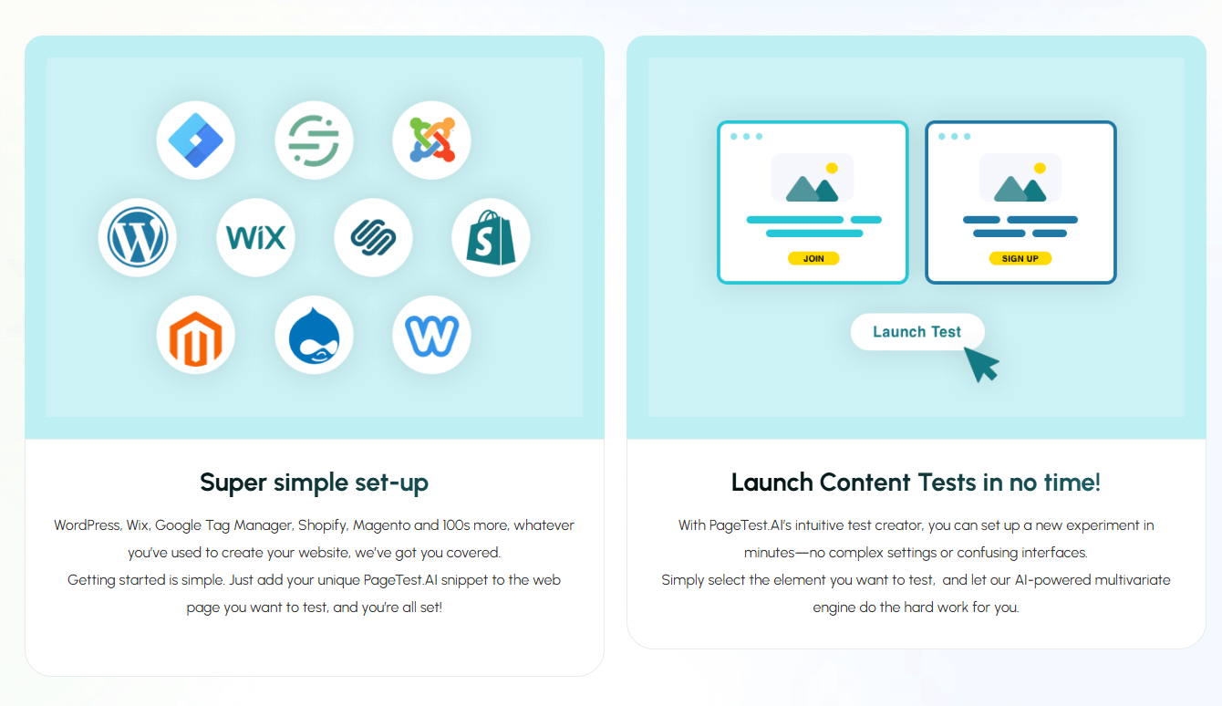 페이지테스트 AI(PageTest AI)는 웹사이트 콘텐츠를 AI 기반으로 테스트하고 최적화할 수 있는 플랫폼입니다. 사용자는 코딩 없이도 A/B 테스트와 다변량 테스트를 통해 웹사이트의 성능을 향상시킬 수 있습니다. 아래 버튼을 누르면 PageTest AI 주소로 연결됩니다.