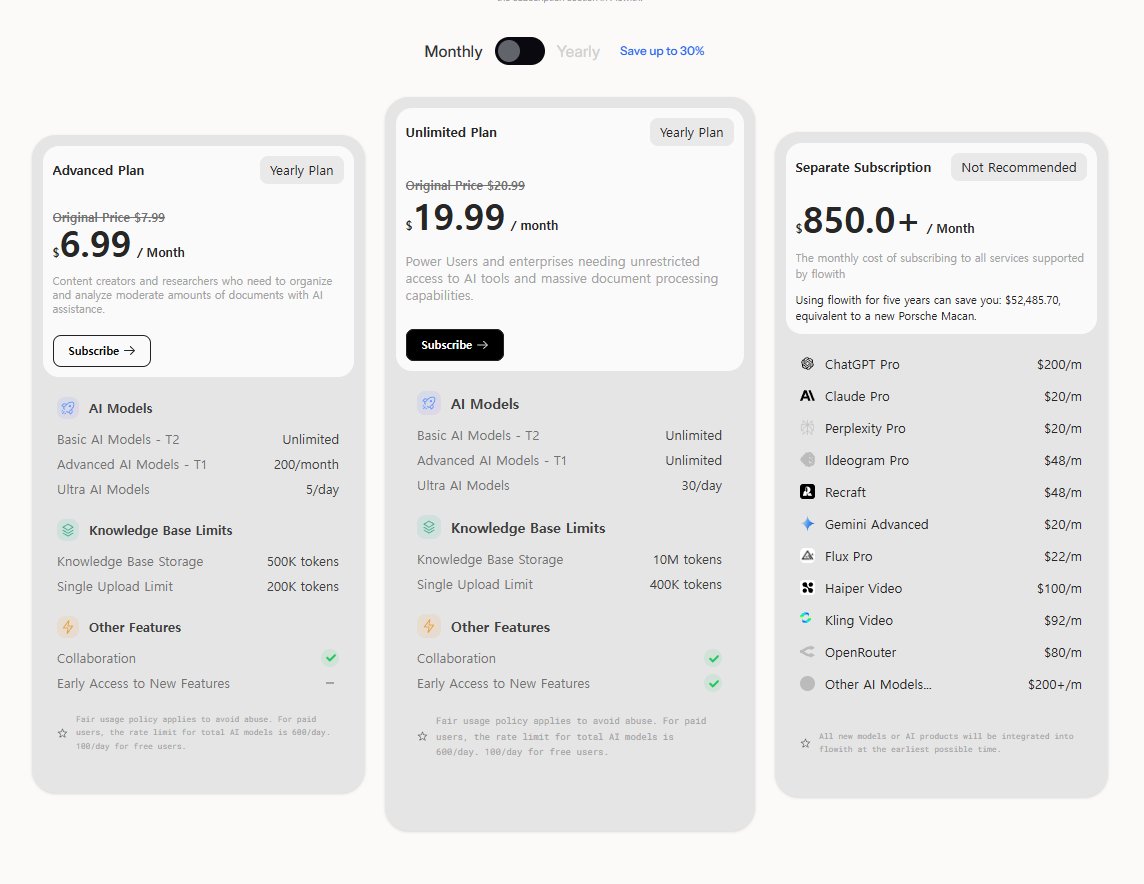더 자세한 Flowith AI 요금제 정보는 Flowith Pricing 페이지에서 확인하세요.