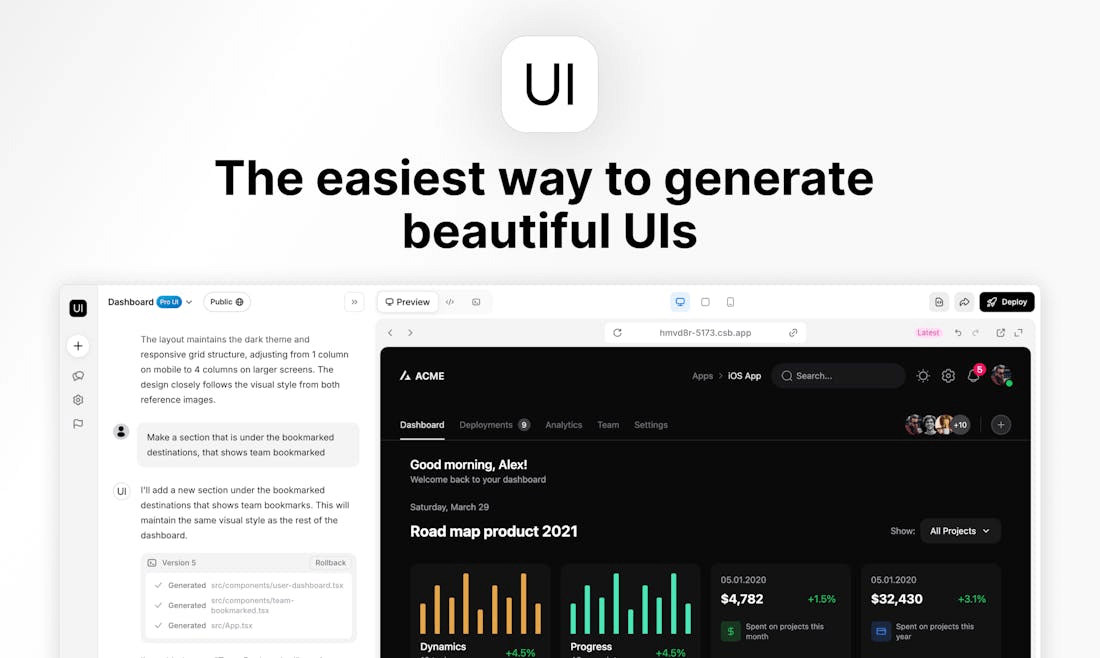 HeroUI AI는 매우 직관적인 방식으로 웹 UI를 생성할 수 있는 서비스입니다. 사용자는 별도의 개발 지식 없이도, AI의 도움으로 완성도 높은 UI를 만들 수 있습니다.